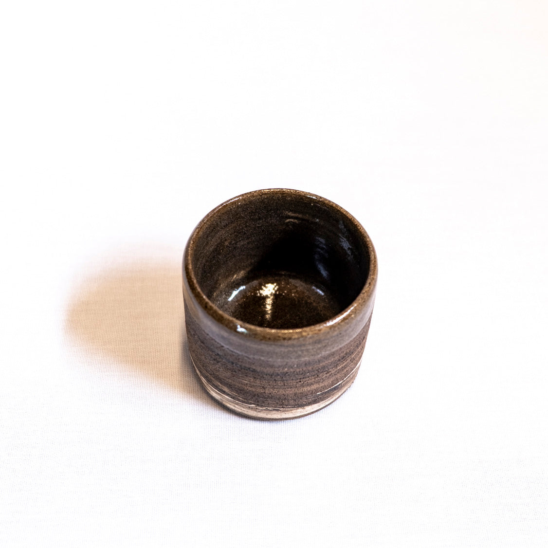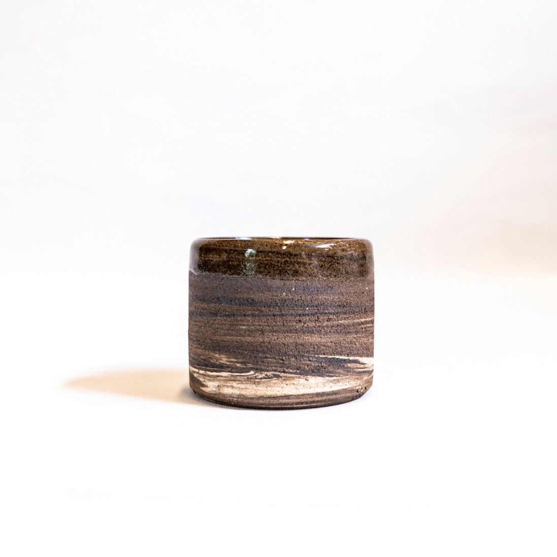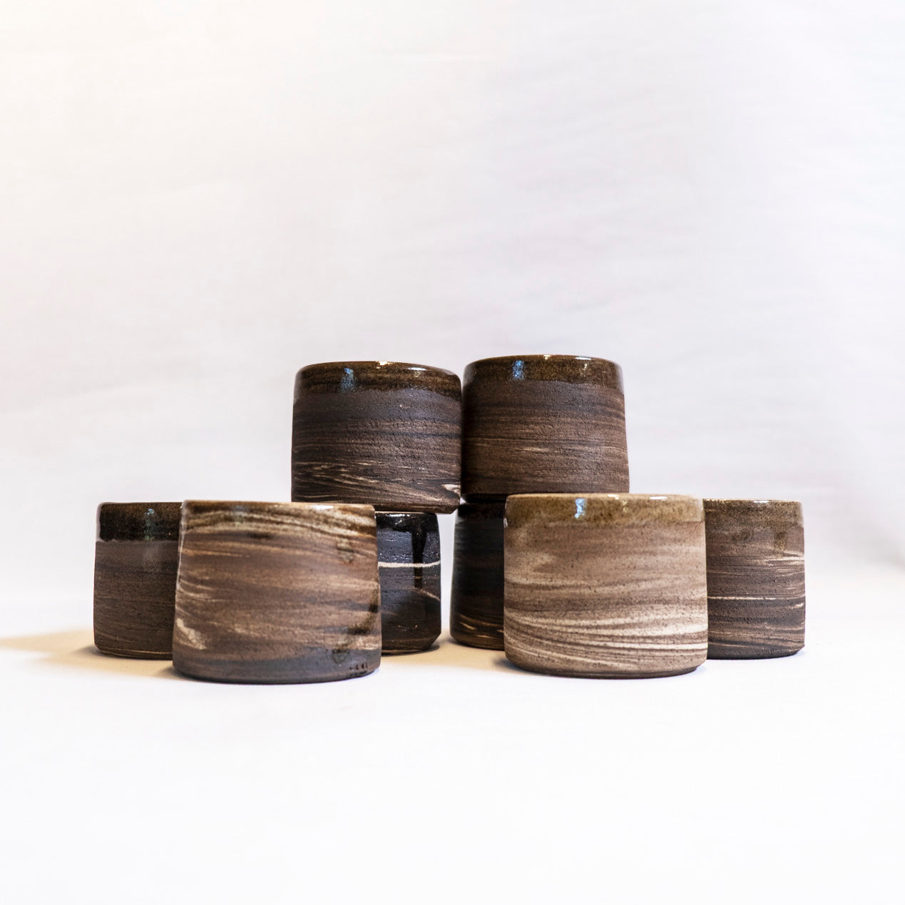 Fijne tasjes gemaakt met een mix van zwarte en witte klei. Elk stuk is hierdoor uniek. We werken het tasje af met transparante glazuur.