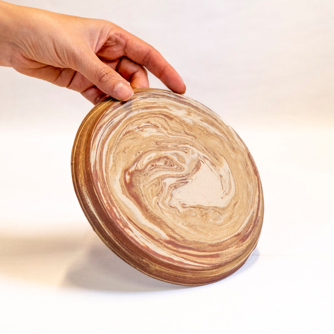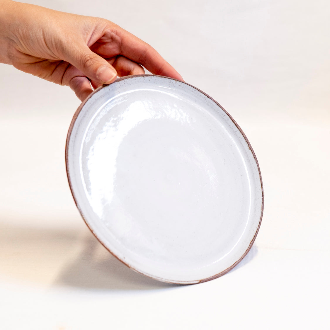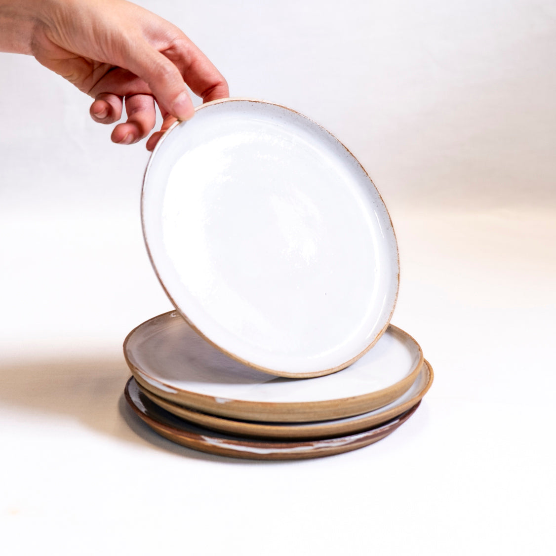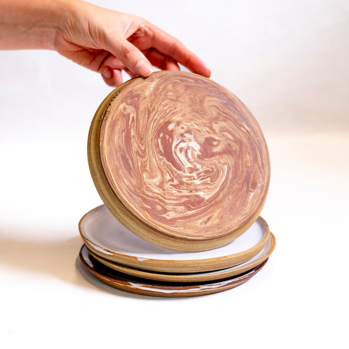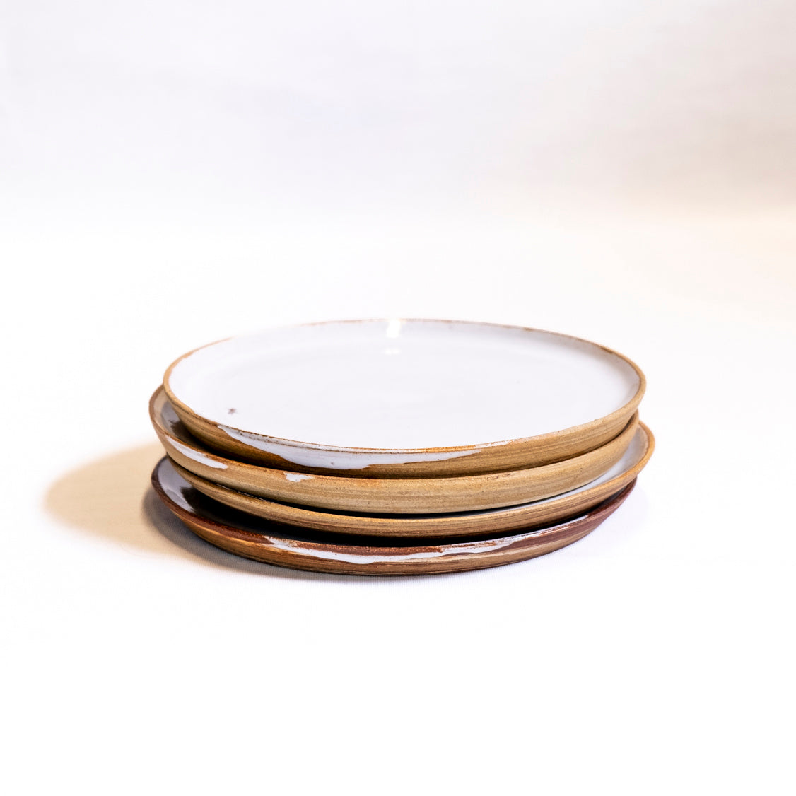 Prachtige bordjes gedraaid met witte en rode klei en afgewerkt met witte glazuur.